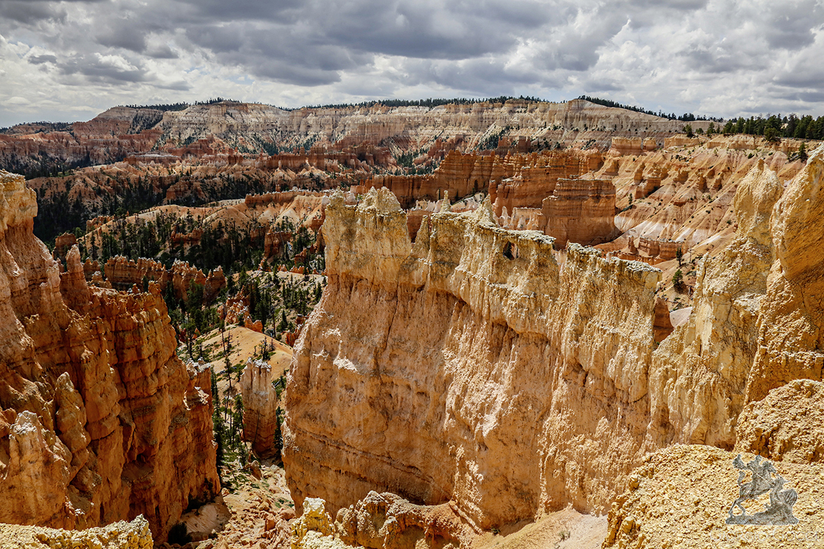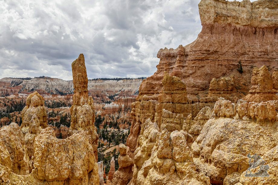 Der Bryce Canyon ist ein weitläufiger Nationalpark im Süden von Utah und bekannt für seine nach oben spitz zulaufenden Felsformationen, genannt Hoodoos.